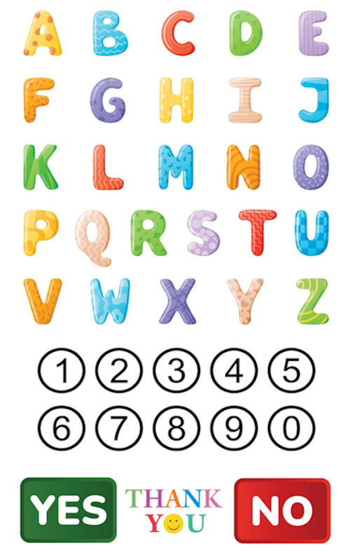Alphabet & Numbers Card – Let them spell anything not shown on a card. If pointing is difficult, you can point for them.